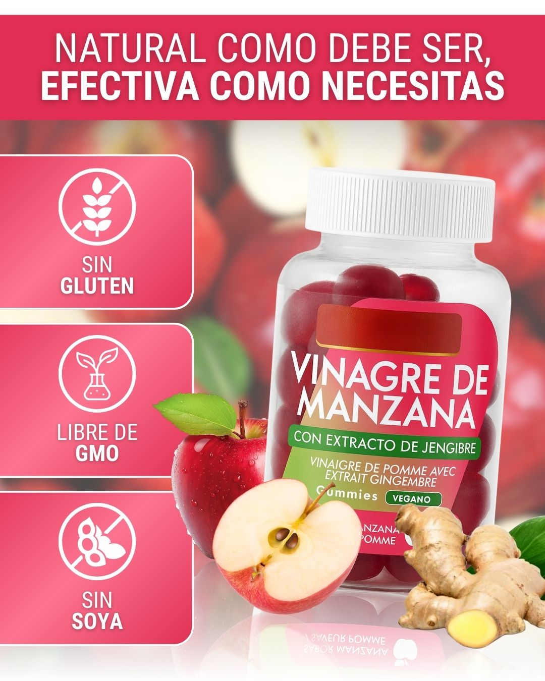 ✅ Hábitos fáciles y sin esfuerzo – Solo 2 gominolas al día, deliciosas y prácticas, nada de vinagre líquido con sabor fuerte.